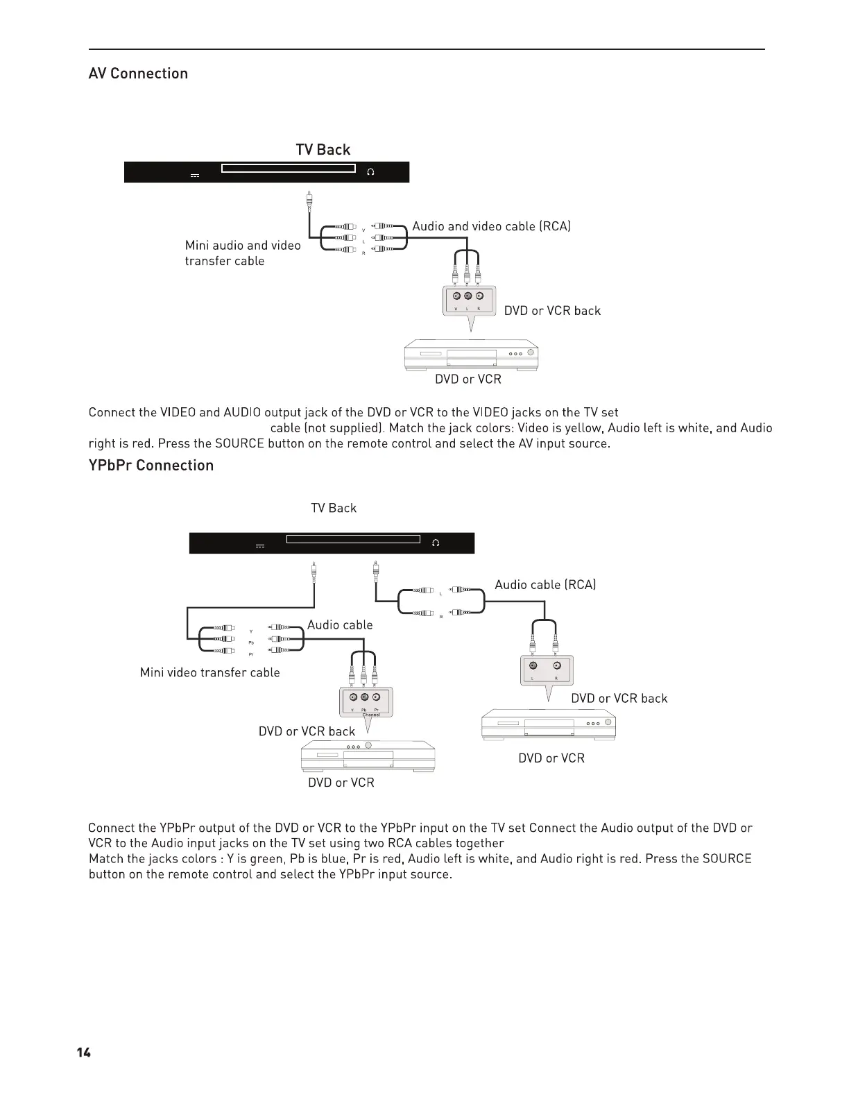 cable(not supplied) and an RCA