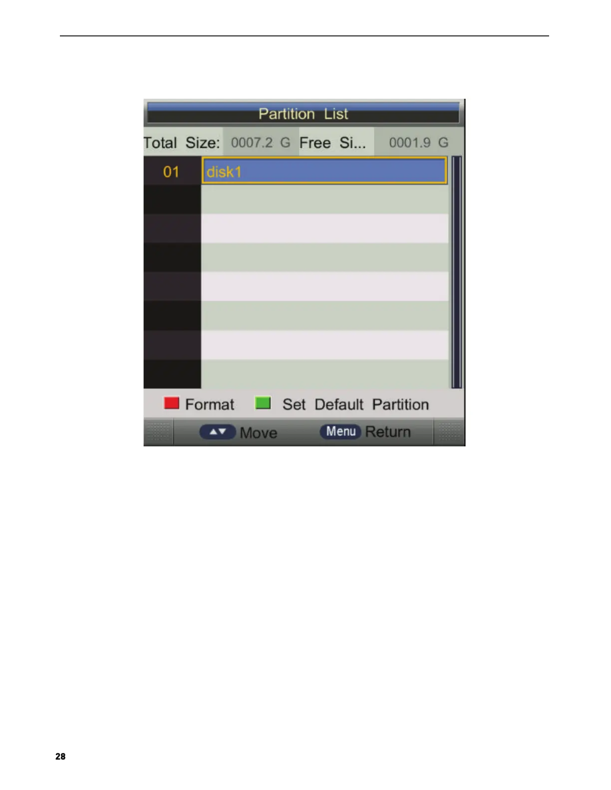 Press ▲/▼ button to select different disk on in Partition Select menu.