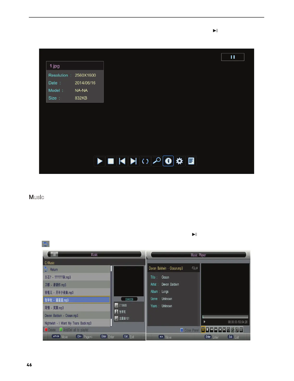 Press ◄/► button to select Music in the main menu, and then press ENTER button to enter.