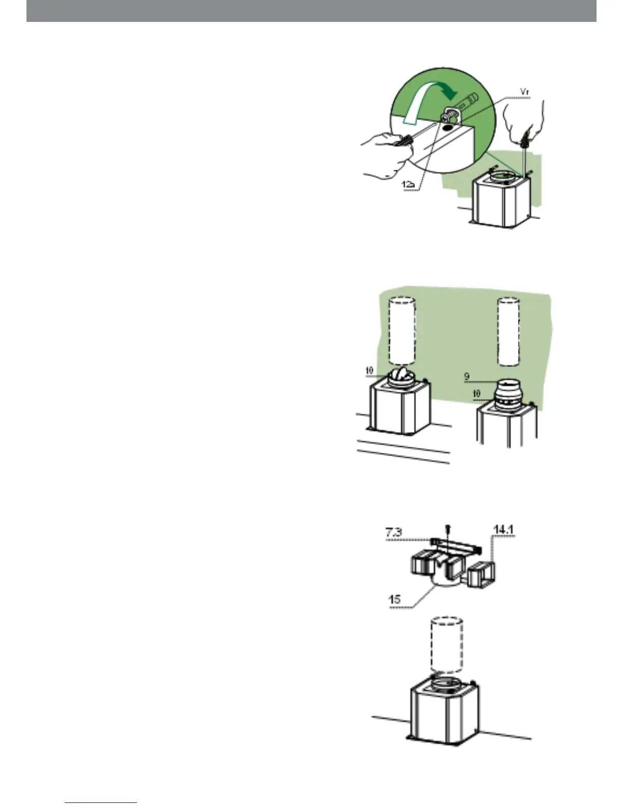 • Adjust the screws Vr to level the hood body.