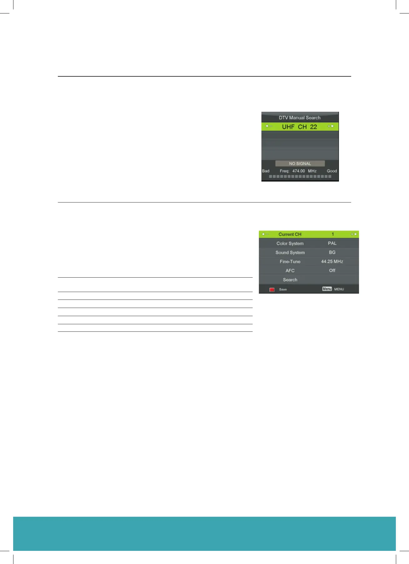 1. Press the ▲▼ buttons to ATV Manual Tuning then press the OK