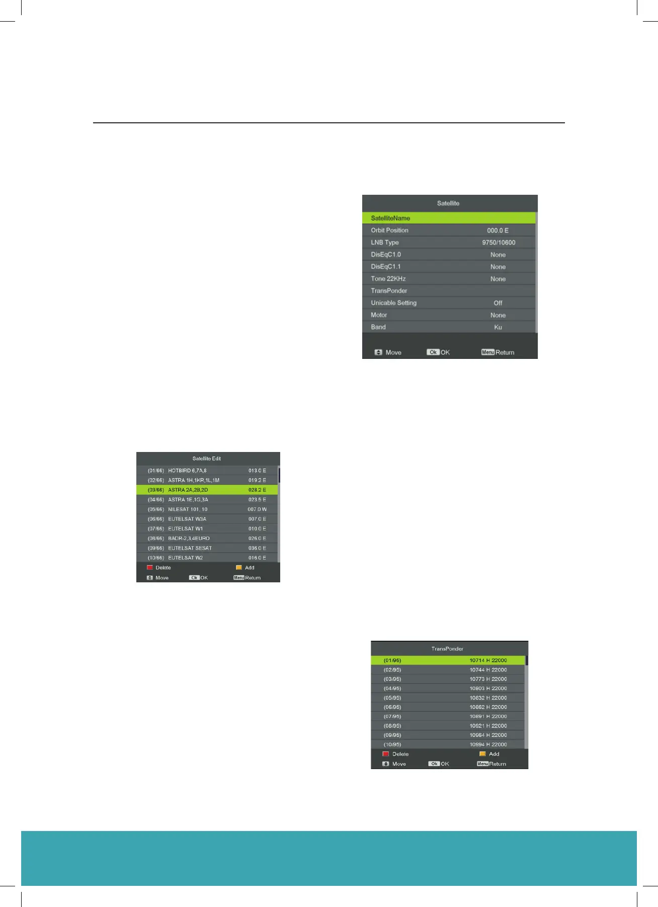 Transponder: Press OK button to edit the transponder.
