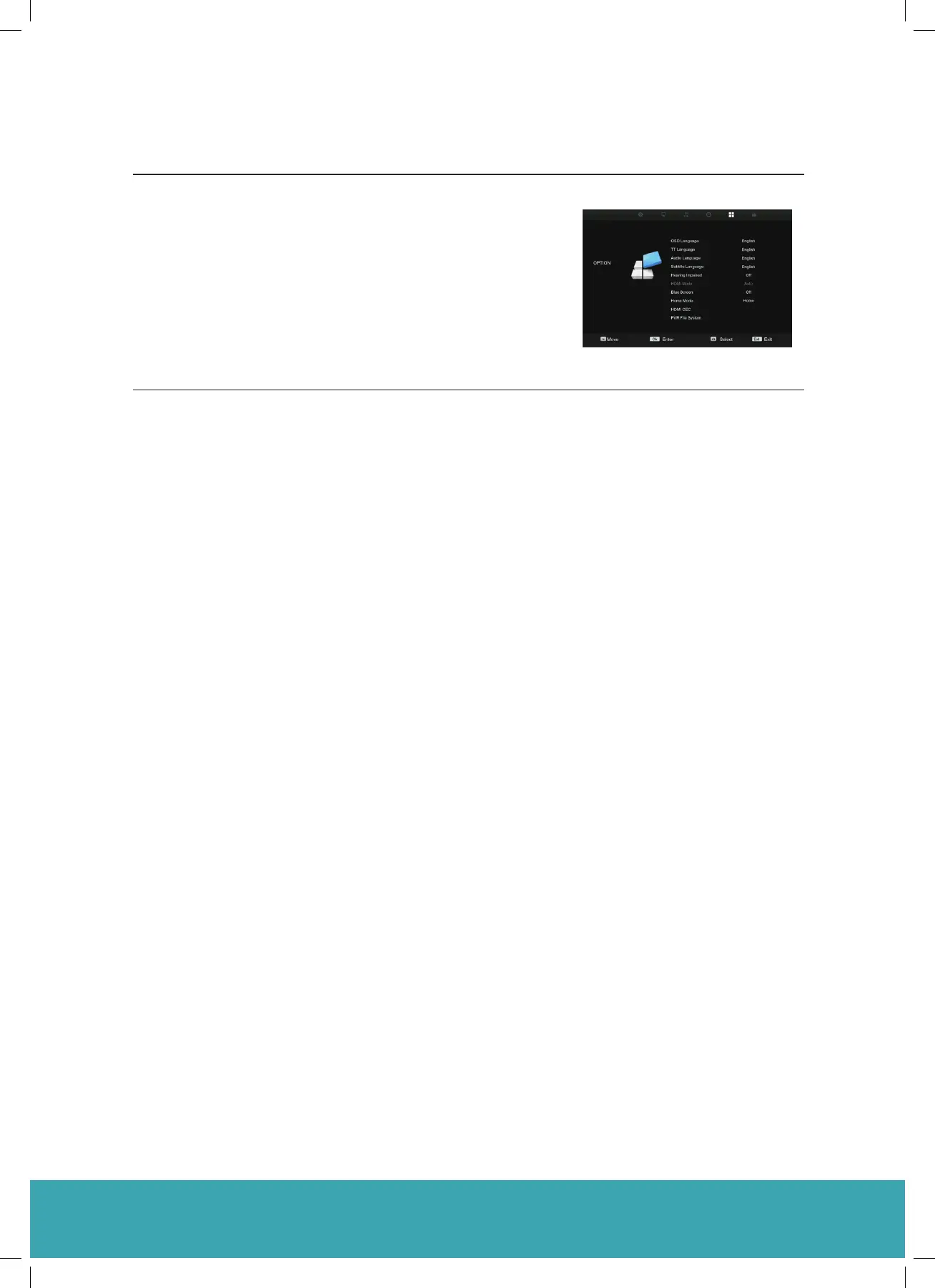 Allows you to switch the Blue Screen on/off when TV is no signal.