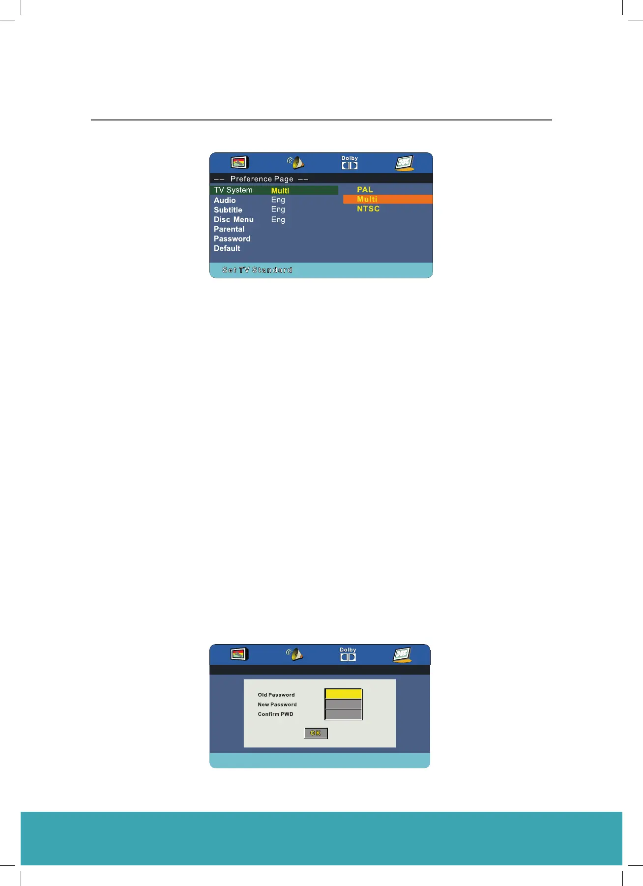• PAL This is selected when the player is connected to a PAL System TV.