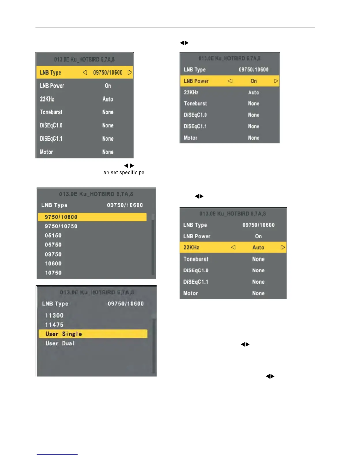 Highlight the LNB Type , and use the