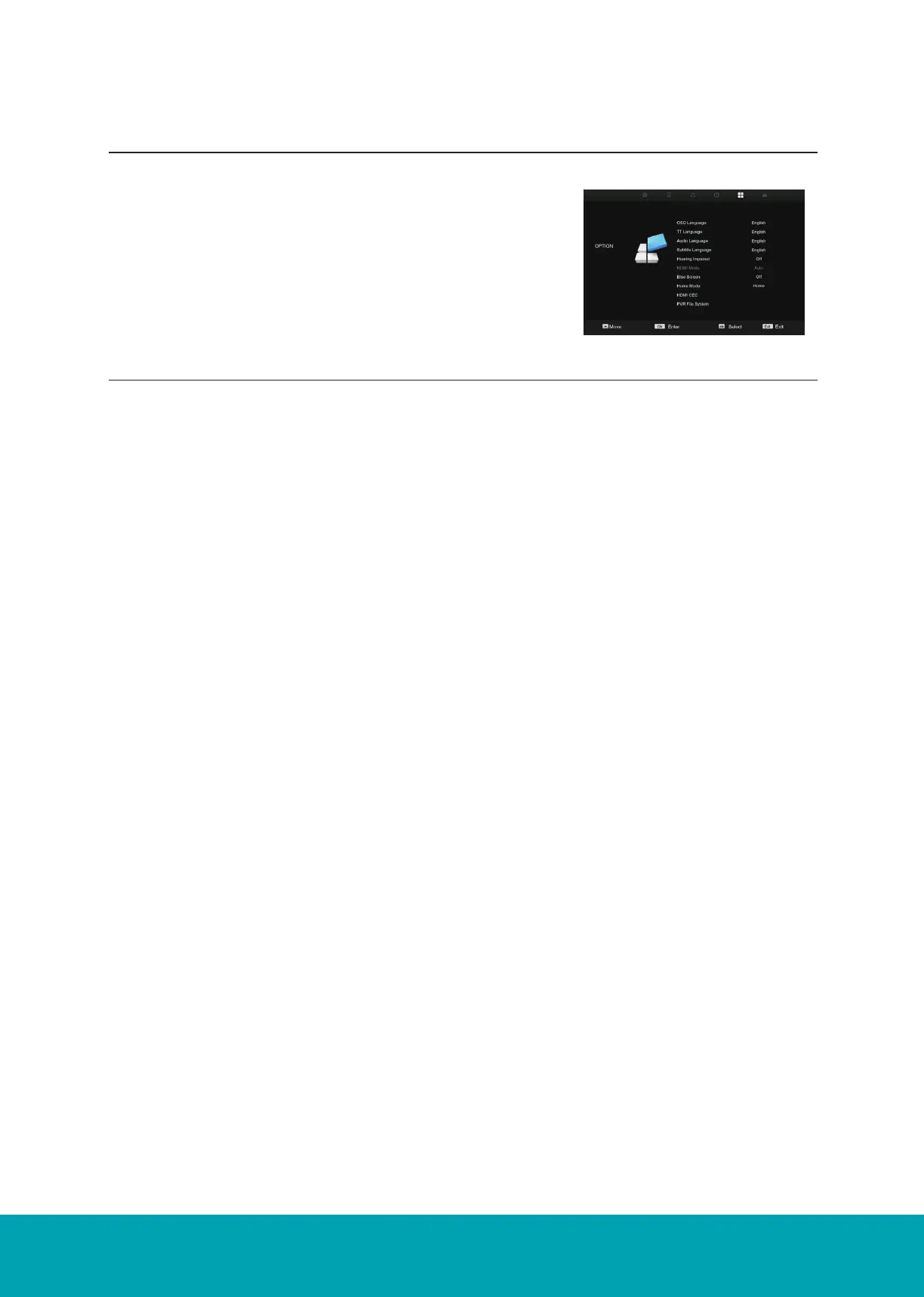 Allows you to switch the Blue Screen on/off when TV is no signal.