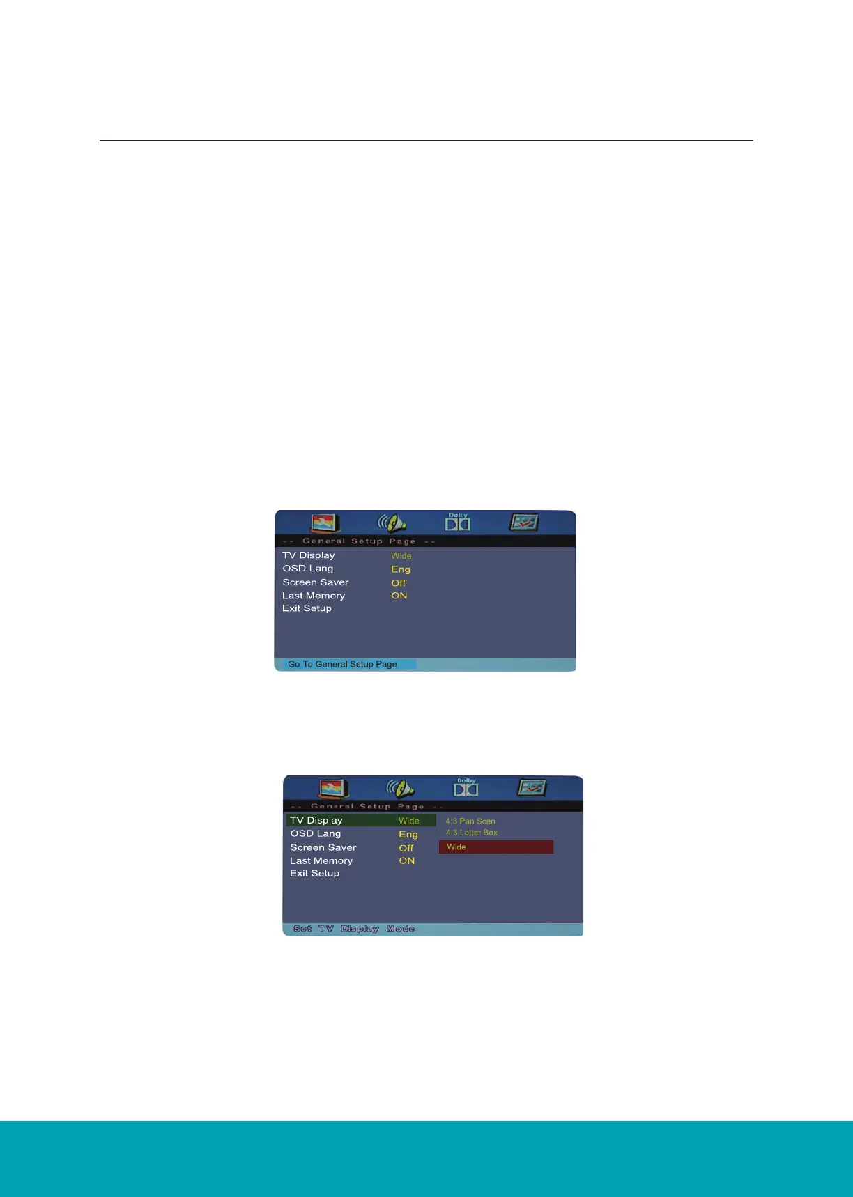 • Setup Mode provides the menu for the configuration of General Setup Page, Audio Setup