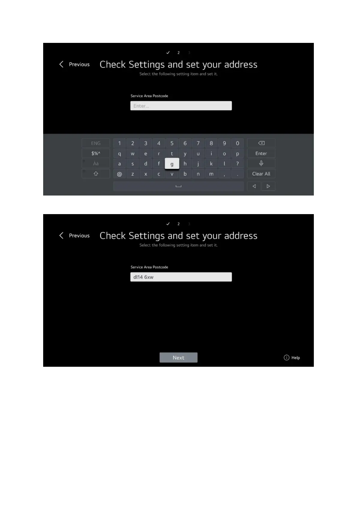 Enter your postcode, this is used to get the correct regional programmes on satellite