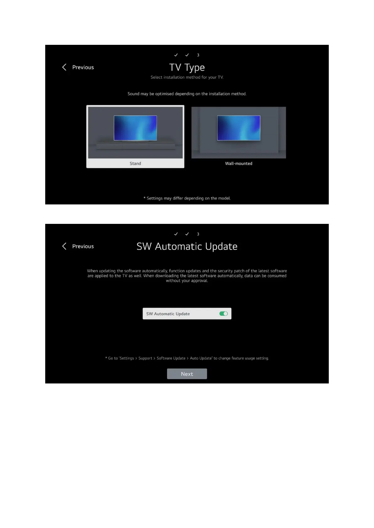 Select whether your TV is fitted to the stand or wall mounted, this affects the sound settings.