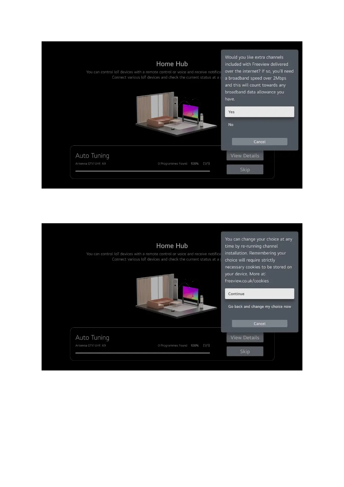 If you selected Yes this screen will appear, select continue and then wait while it installs the channels.