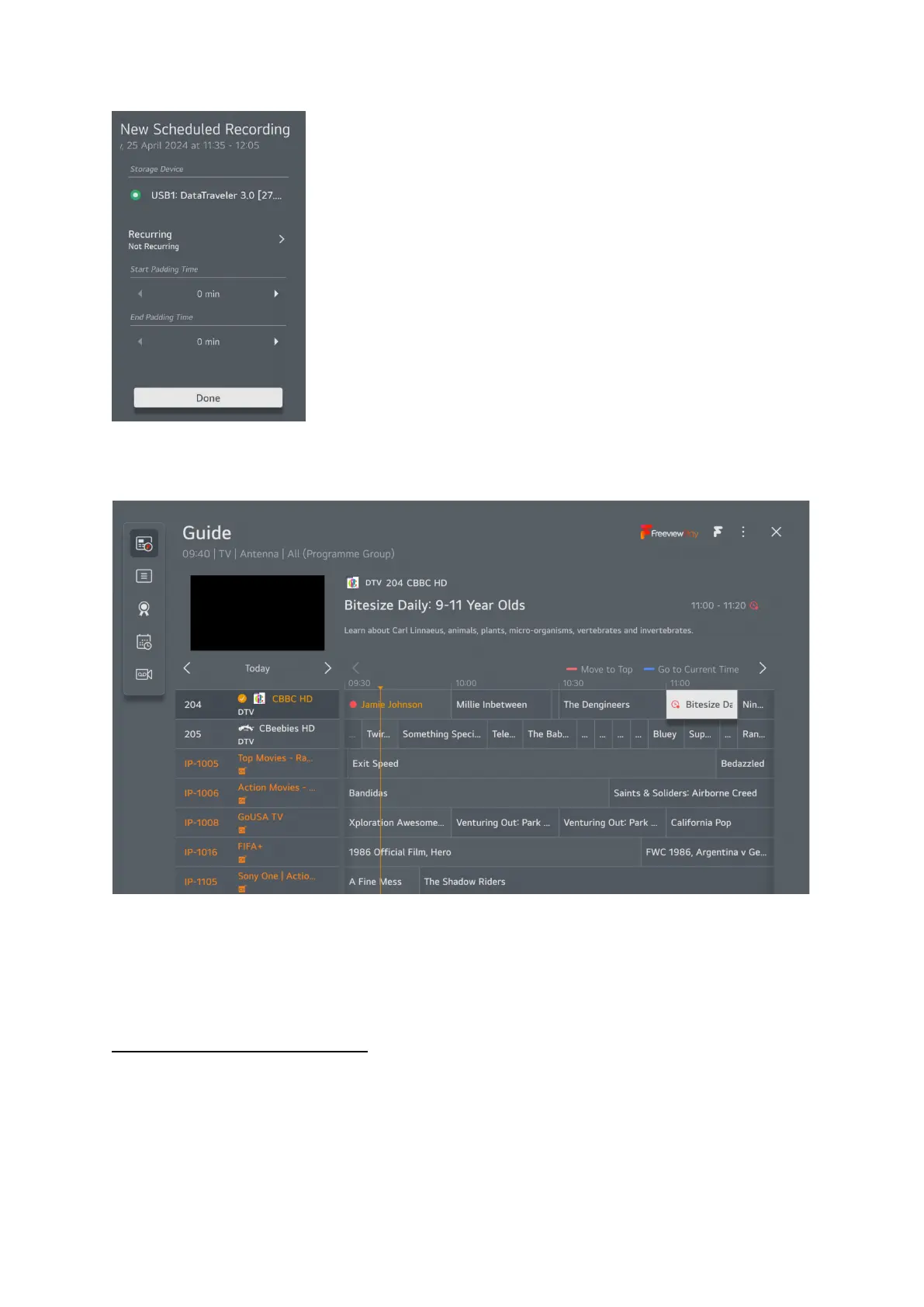 The program is now set for recording, please remember you can’t record a program and watch