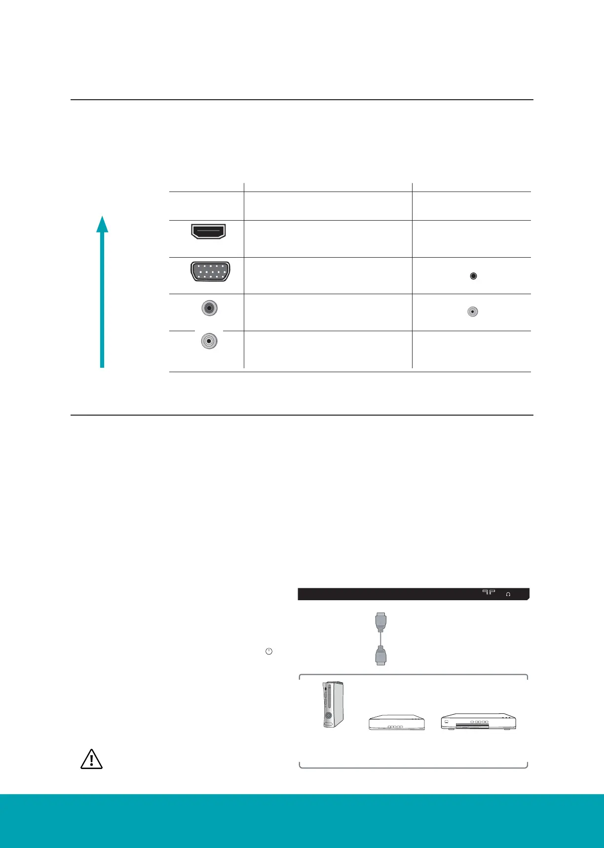 • When you connect to the output of an HD ready player (blu-ray disc player, game console, set-top box or comput-