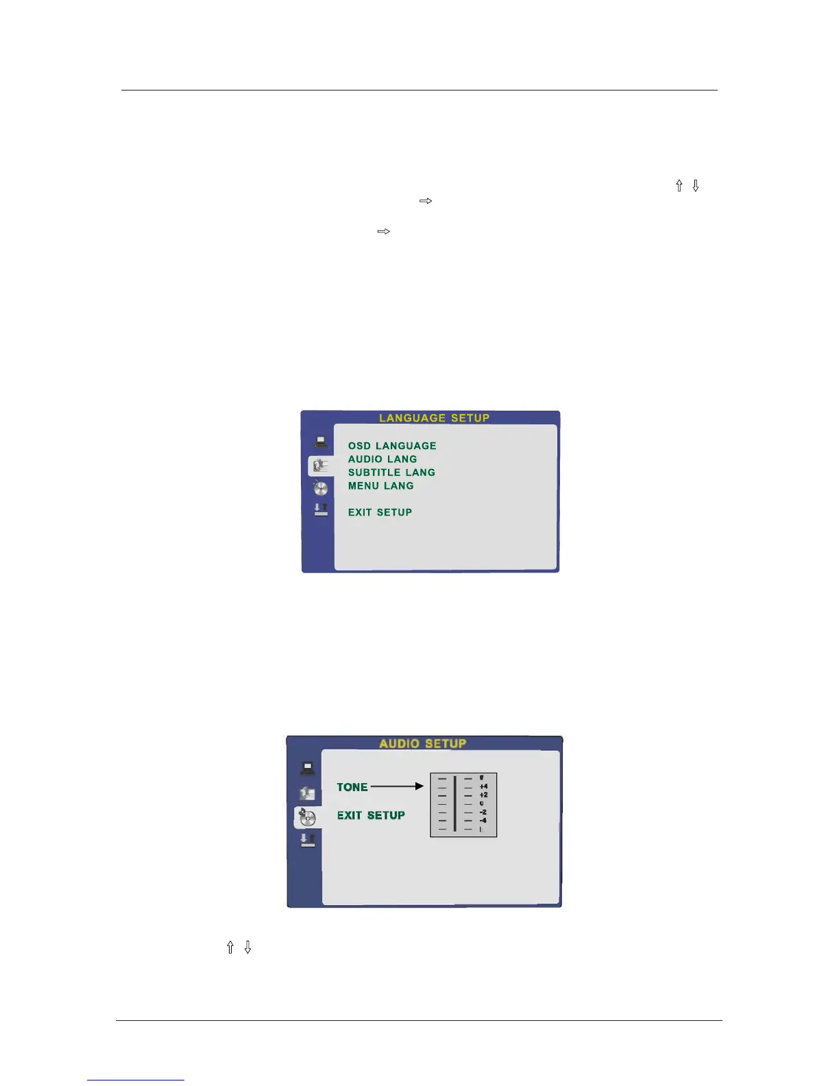 - AUDIO LANG: If the disc you are playing has the language you choose, it will