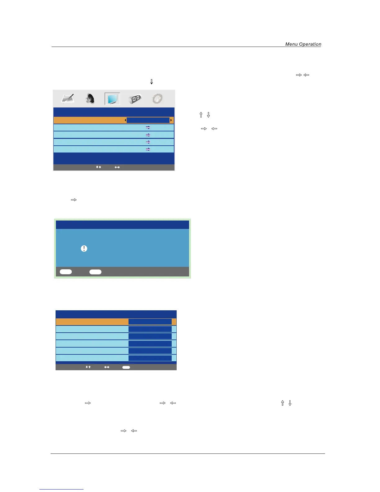 Press the MENU button on the right of your tv or the MENU button on the remote control then use /