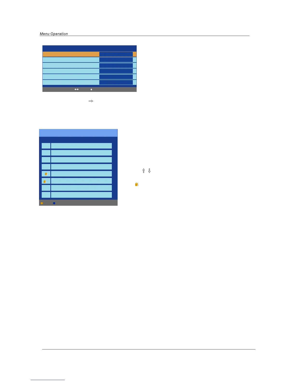 Lock: Lock the channel, you have to enter the code(PIN code in