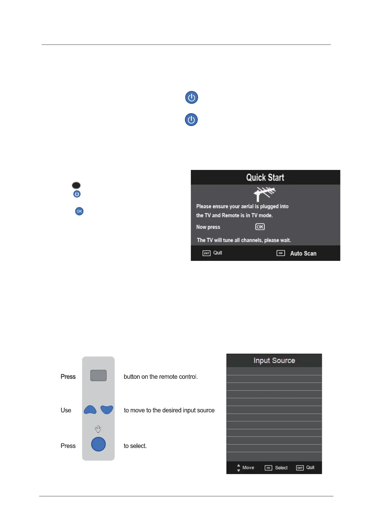 When you initially turn on the TV you will see the first time installation menu as below: