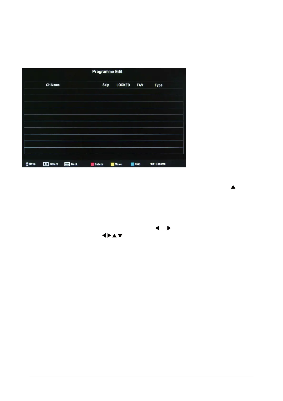 Skip: Select a channel and press the BLUE button, this will label the channel As long as the