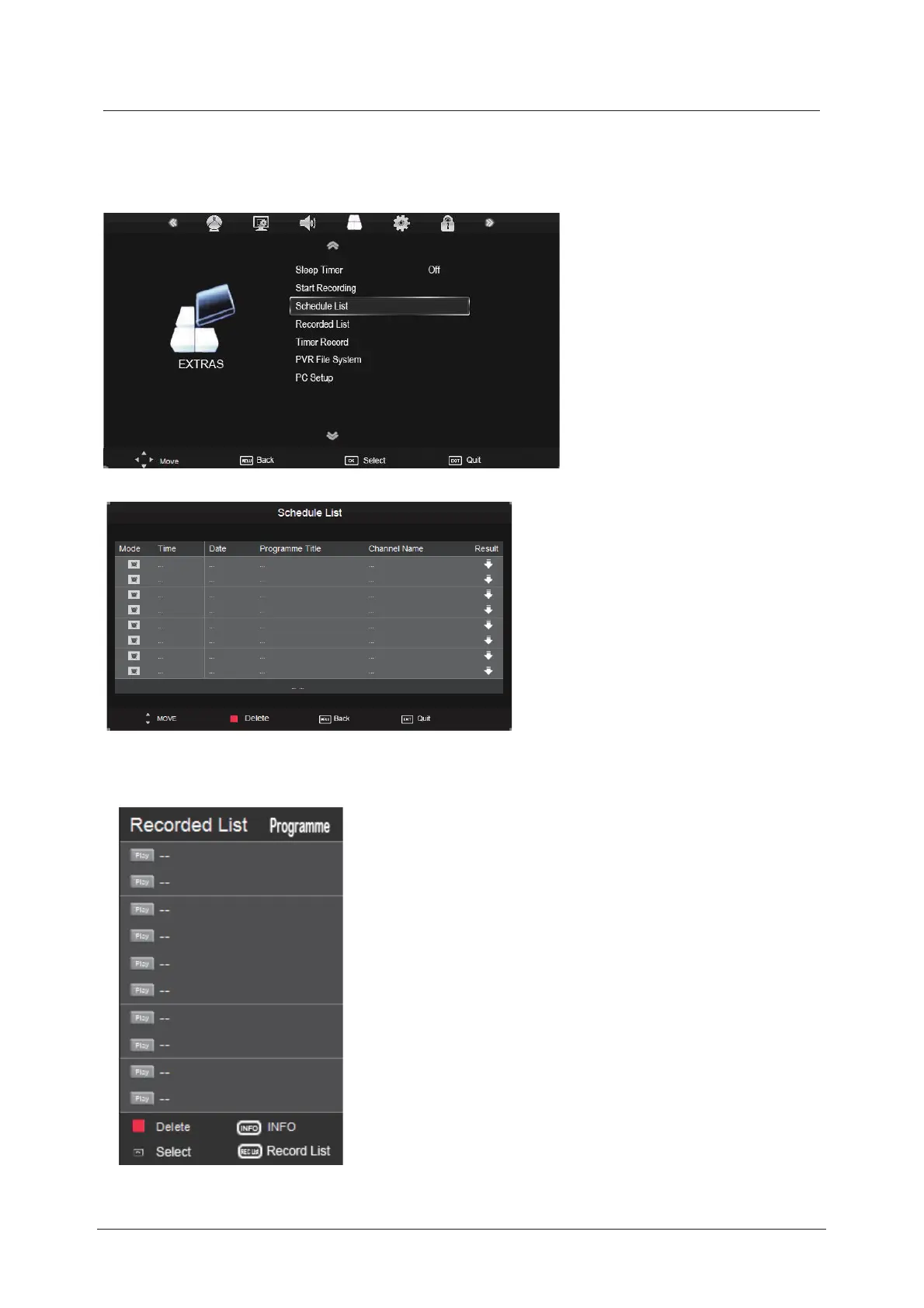 Cello C32ZFCHAM-LED - Recording Operation; PVR Settings; Schedule and Recorded Lists