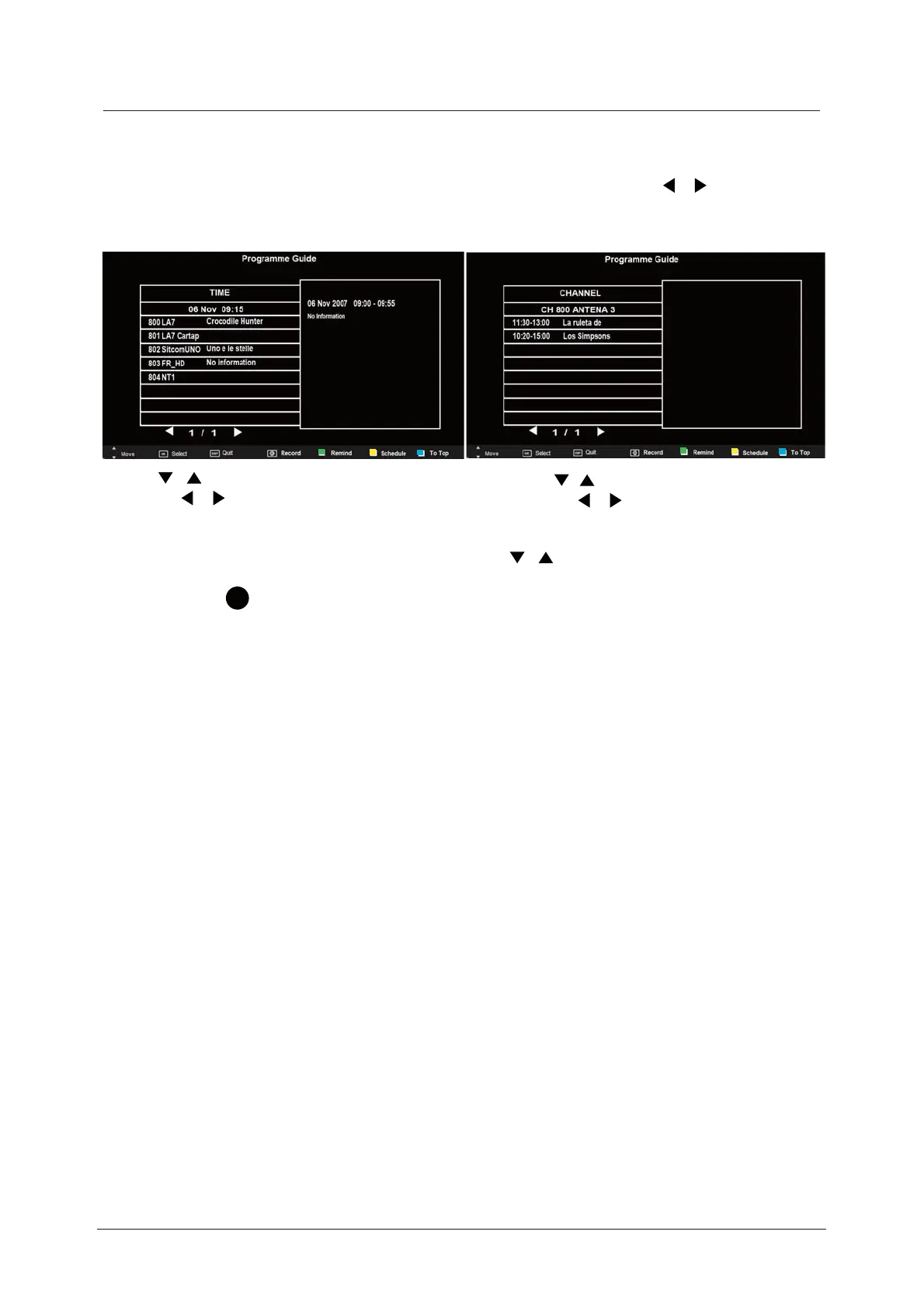 Remind: Press the GREEN button to display the remind menu, and set the time. When the