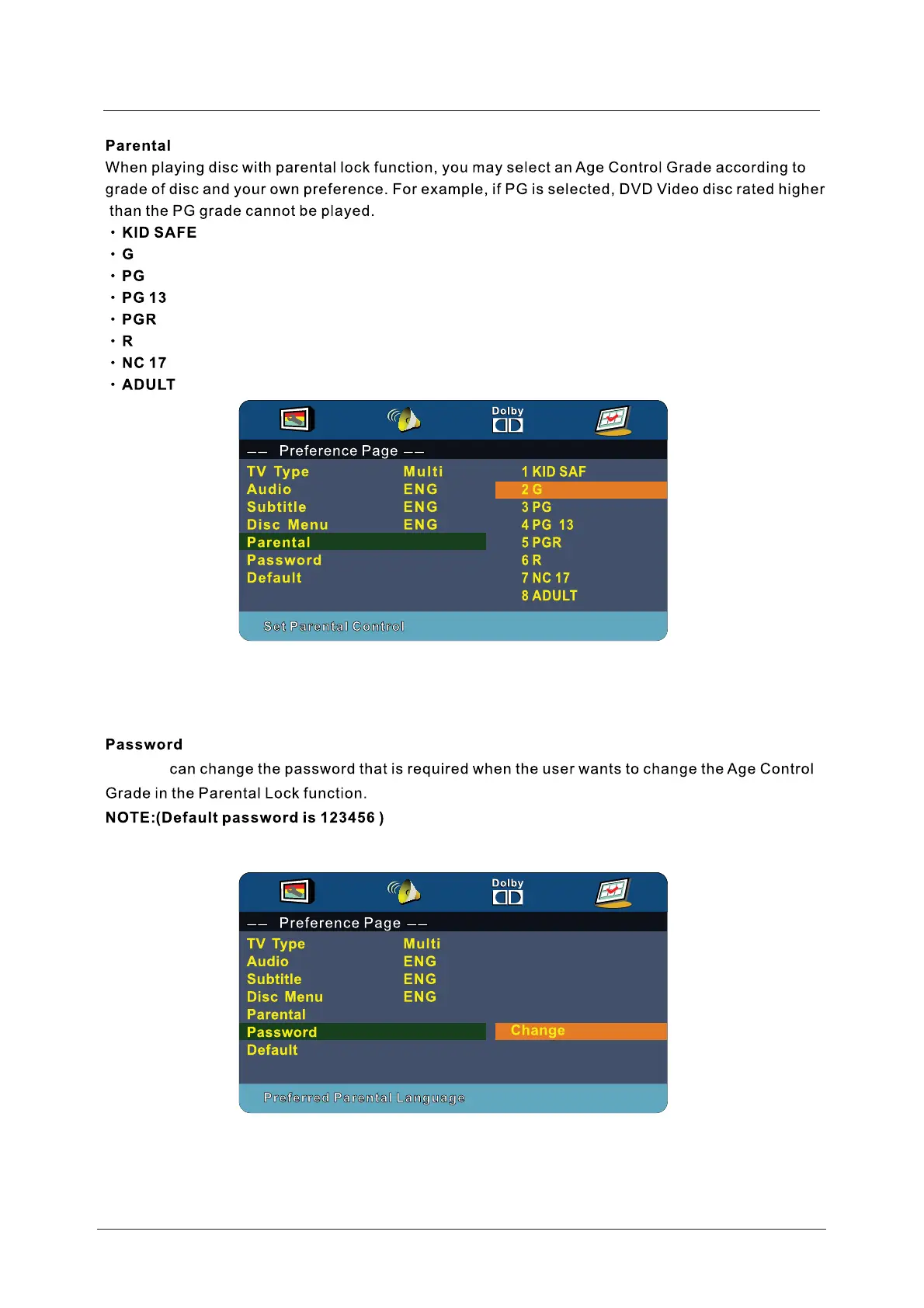 Cello C32ZFCHAM-LED - DVD Parental Lock Details