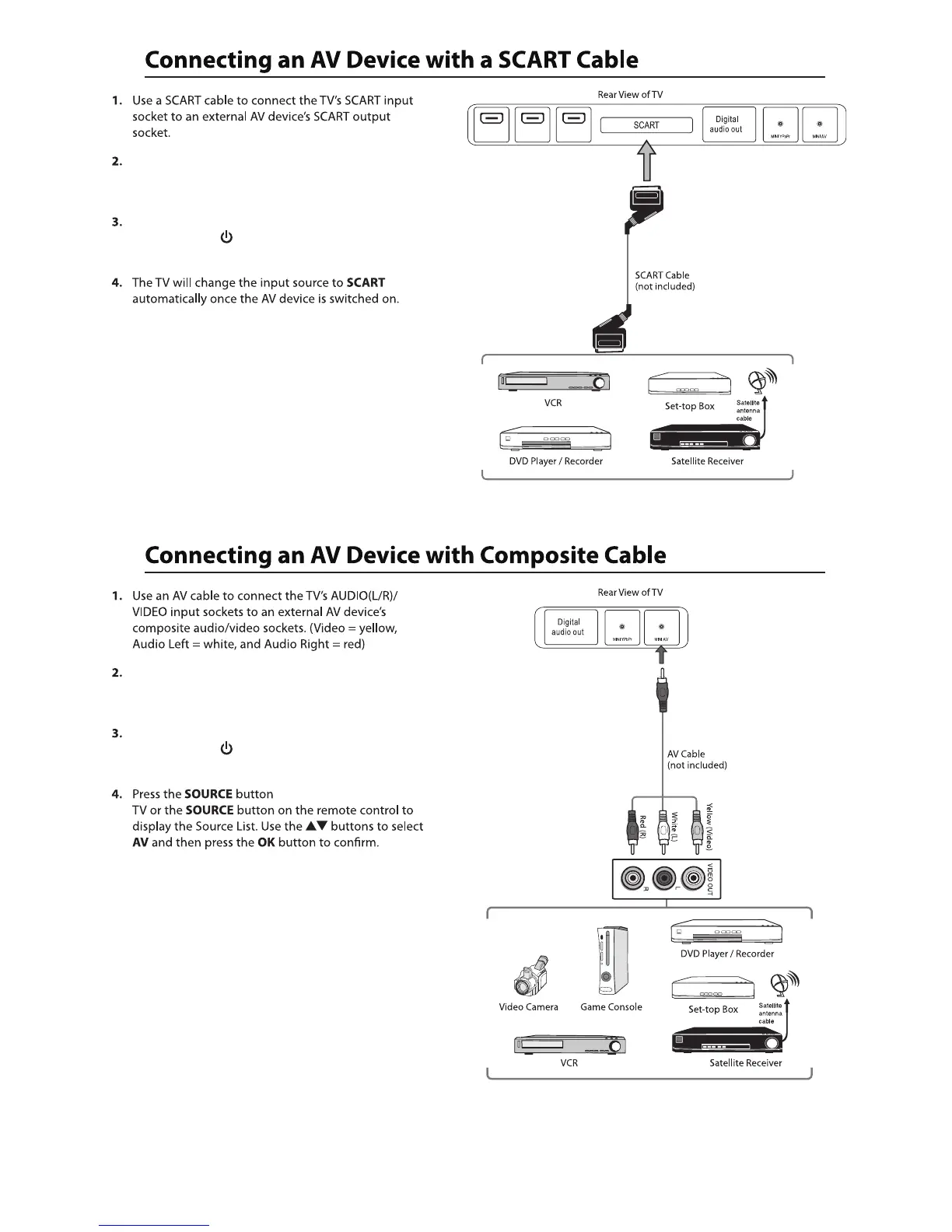 Plug the connected devices into the mains socket before