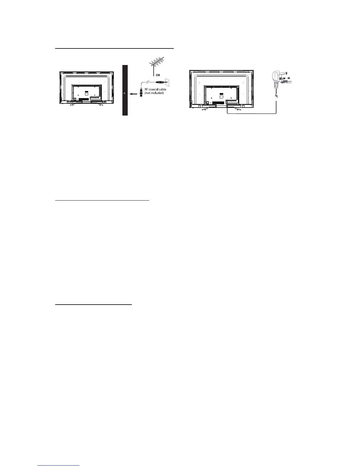 Connect the TV to house mains supply with the 3-pin plug. The TV will power on automatically and the initial