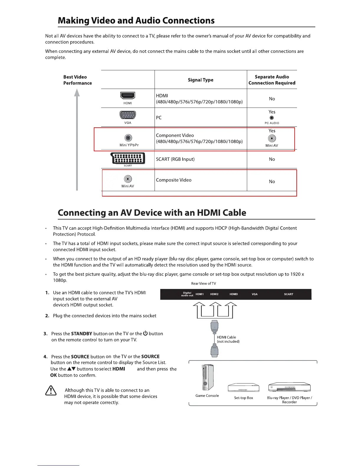 Cello C80238T2 - Making Video and Audio Connections; HDMI Connection Guide; Compatible Signal Types