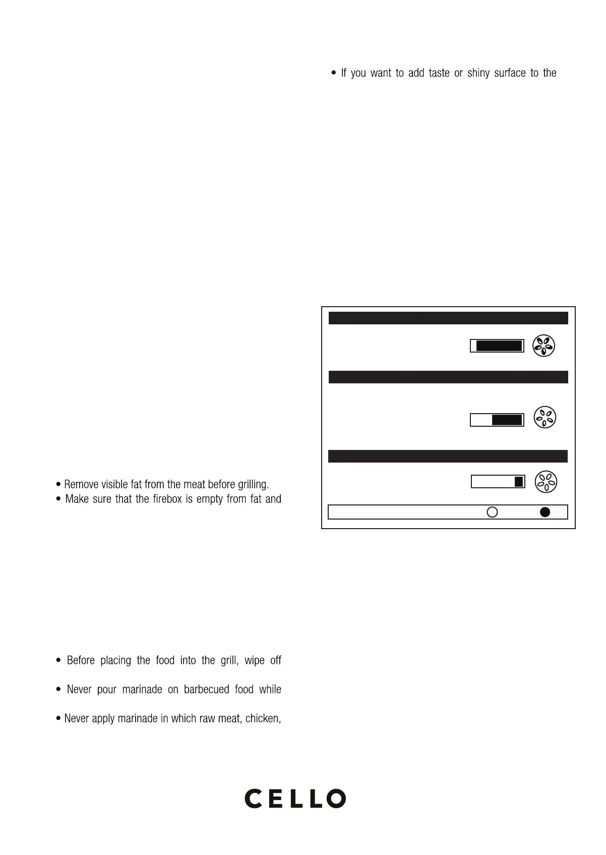 Grilling (160℃ - 185℃) Bottom vent Top vent