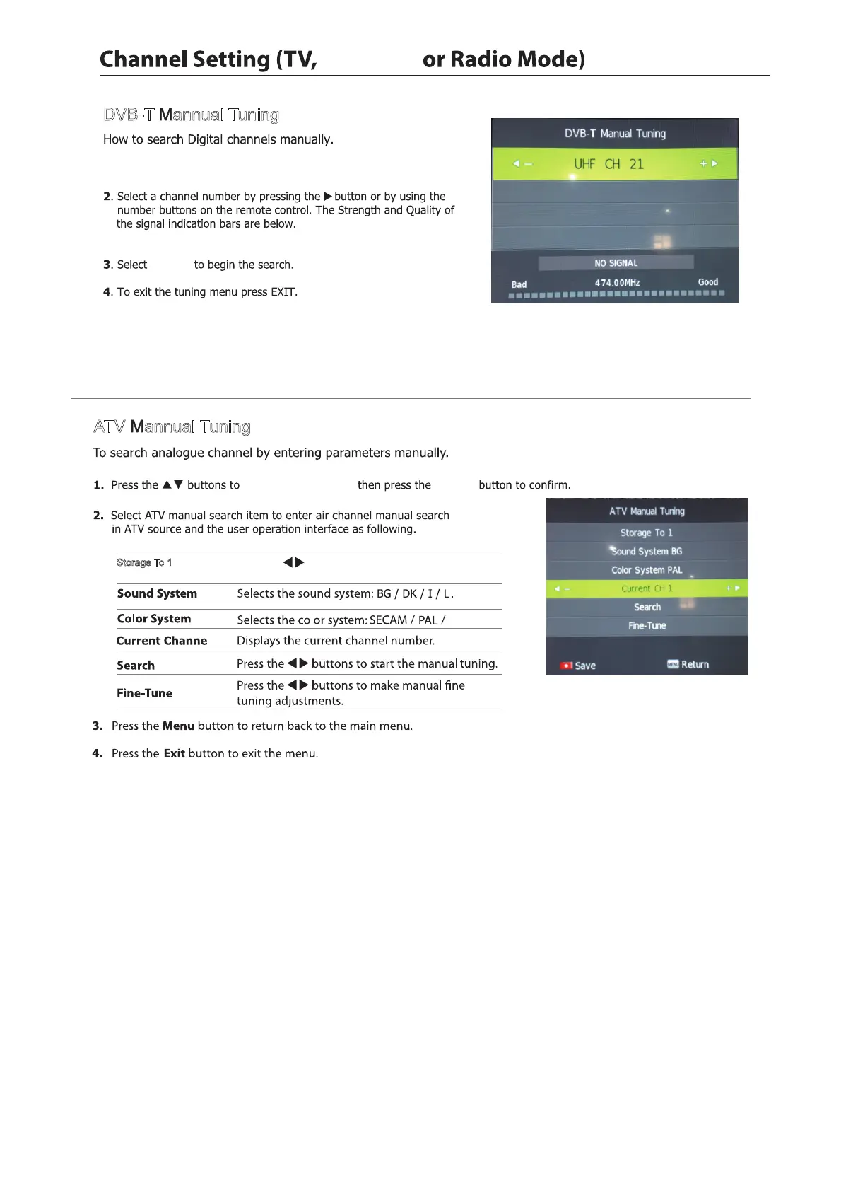 1.Select DVB-T Mannual Tuning,press the ENTER button to confirm.