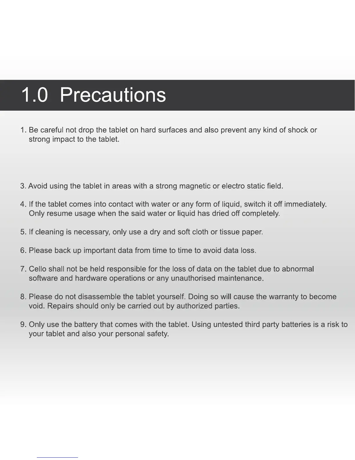 2. Prevent prolonged usage of this tablet in environments where the temperature is too cold or
