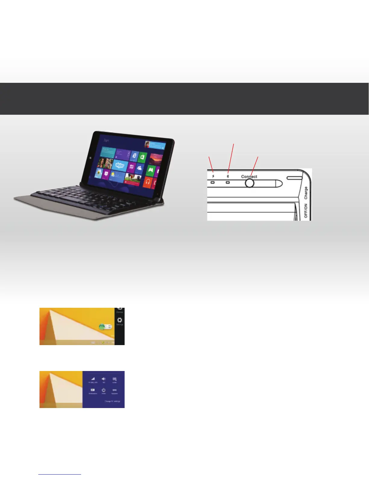 3. Turn on your win8 tablet and Swipe horizontally from the right side of