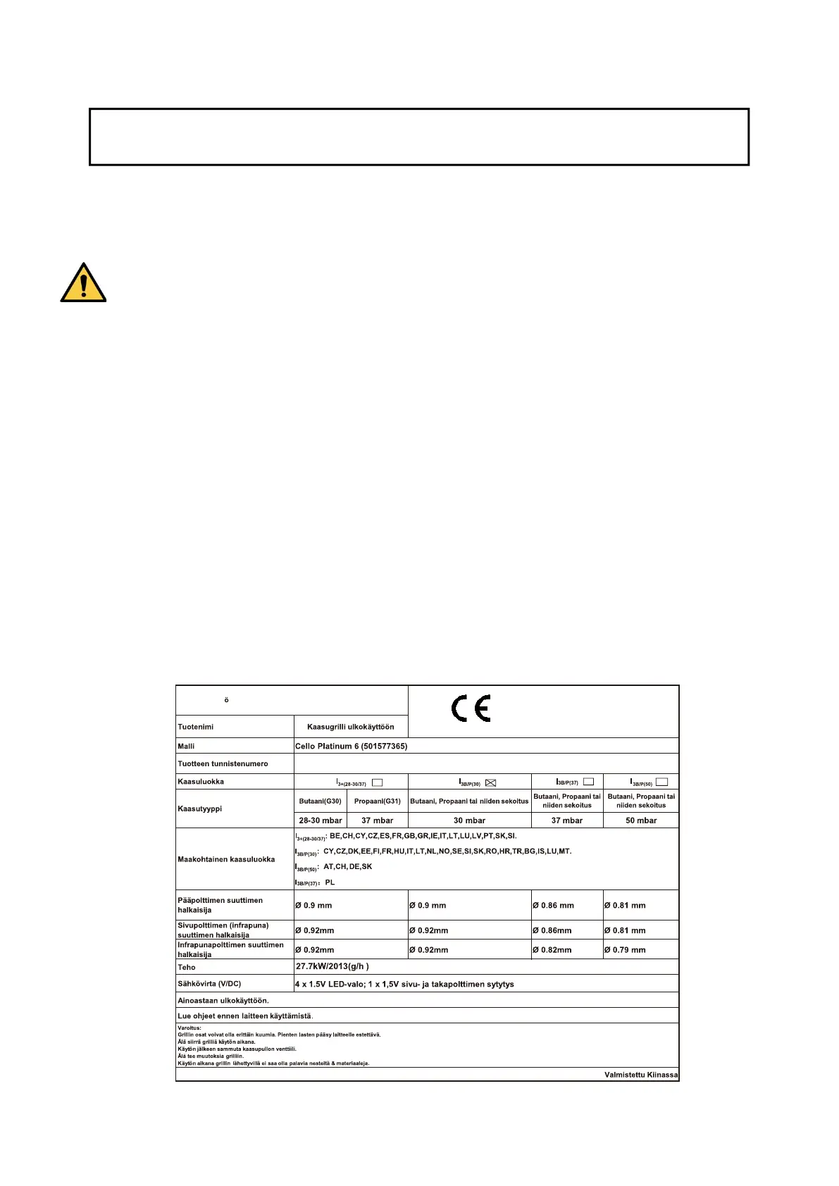TÄMÄ KAASUGRILLI ON TARKOITETTU VAIN ULKOKÄYTTÖÖN