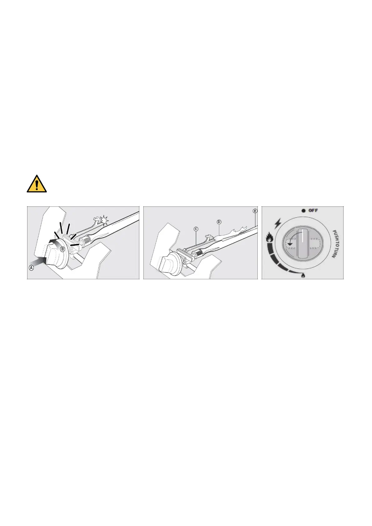 Varning:Om brännaren fortfarande inte tänds, vrid brännarens kontrollvred till "AV"