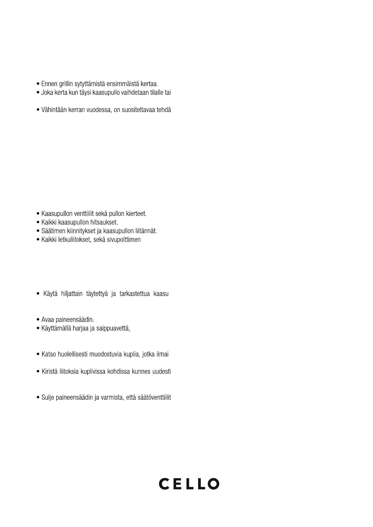 Älä käytä grilliä ellei vuotoja saa korjattua. Sulje