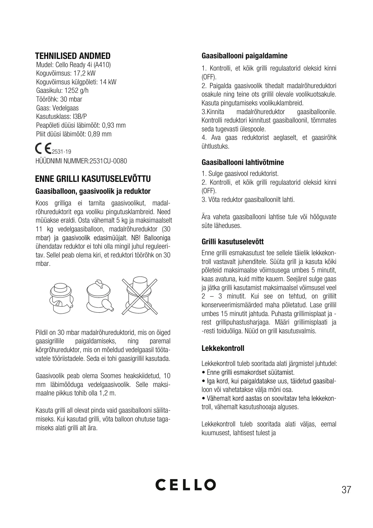 11 kg vedelgaasiballoon, madalrõhureduktor (30