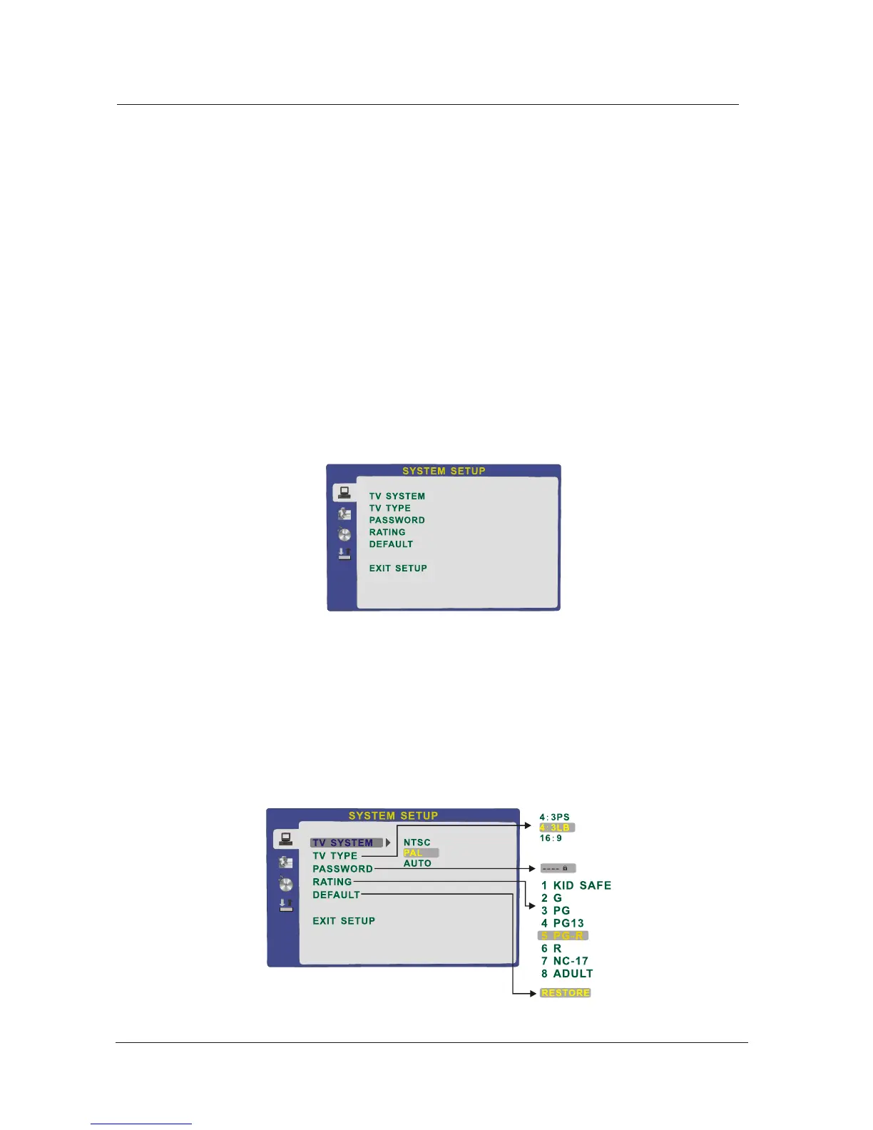 ɼ/ɽbuttons to select the Icon of the desired section, e.g. “TV System" and press