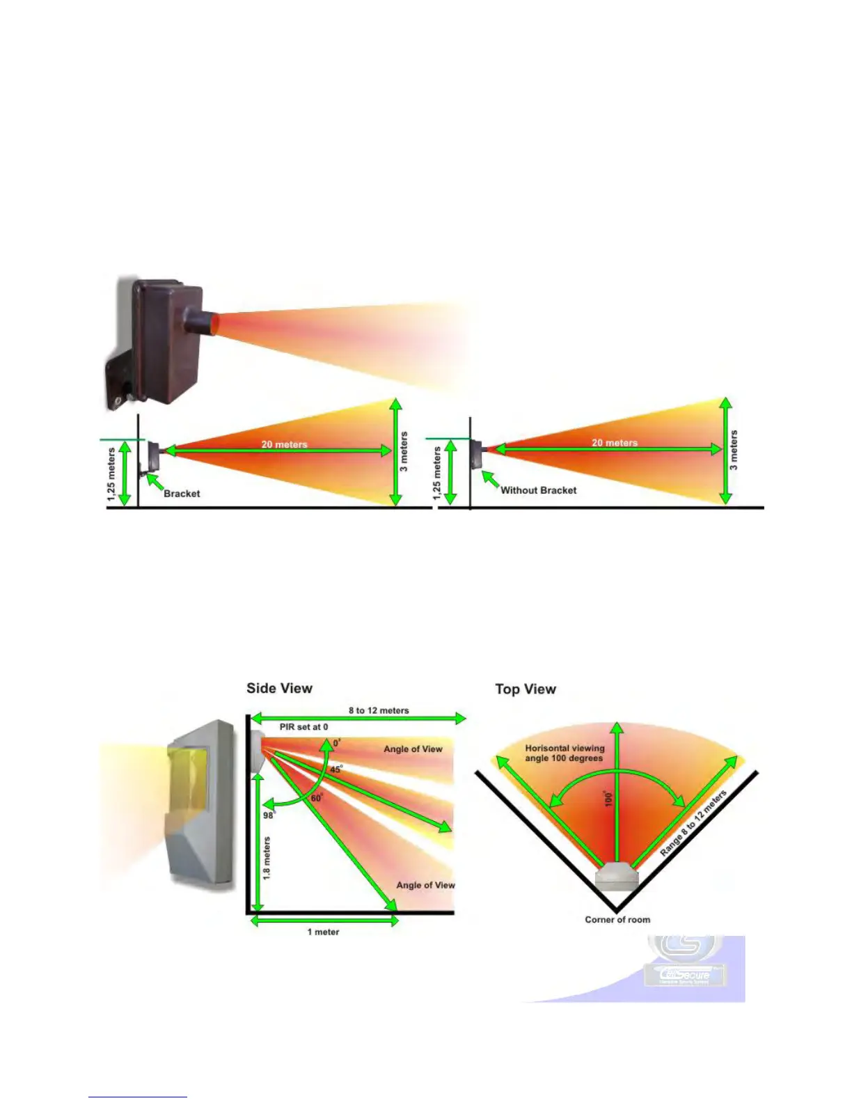 Sensor will detect movement up to 8-12 meters away from the device, at a hight of
