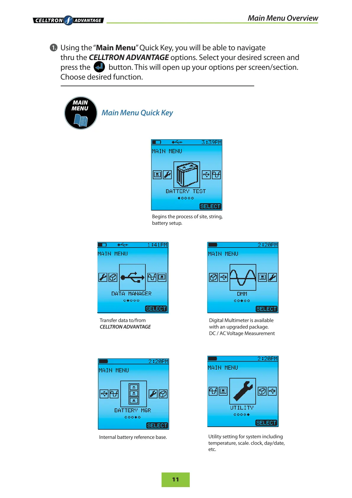 thru the CELLTRON ADVANTAGE options. Select your desired screen and