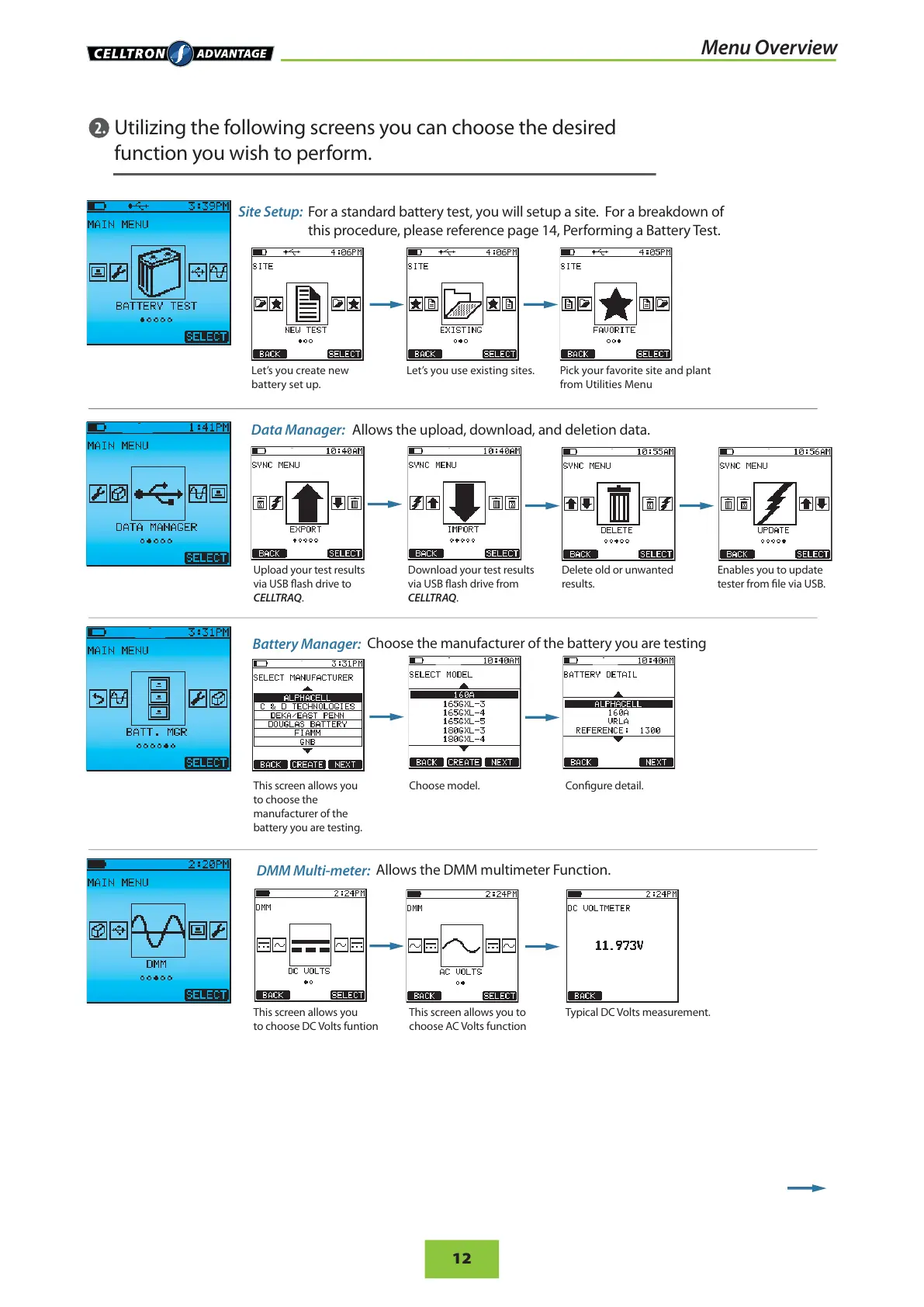 this procedure, please reference page 14, Performing a Battery Test.