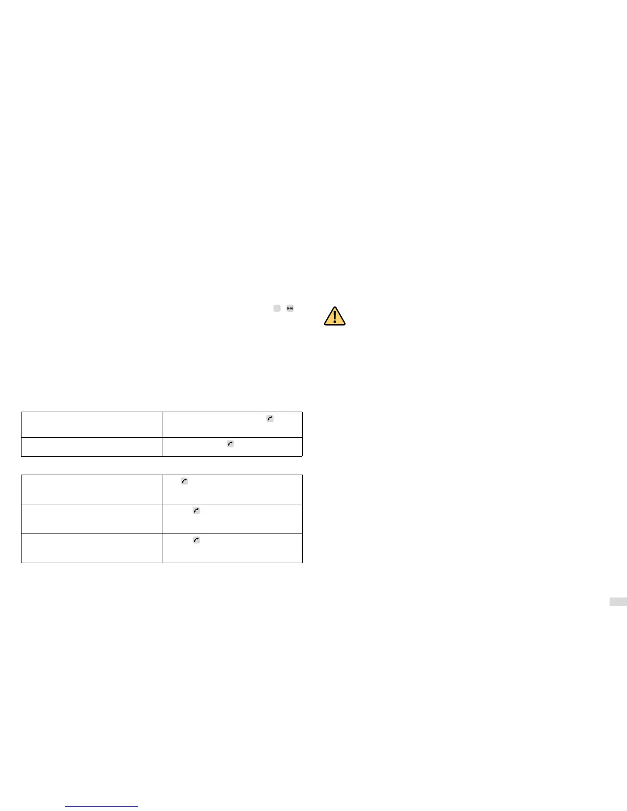function. In case of receipt of a phone call use the commands shown in the following table: