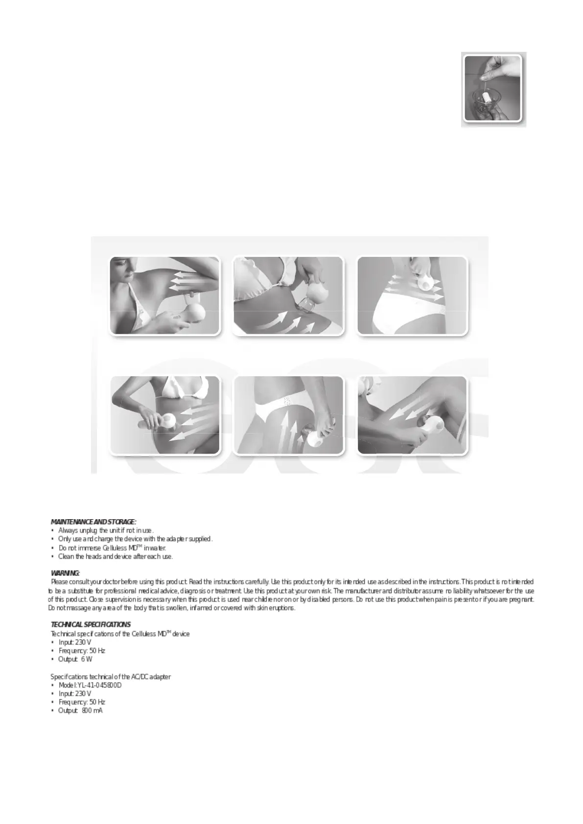 If you want to treat several parts of your body, always start from the upper part you want to treat and work your way down. With the motion indicated and while respecting the specif ed
