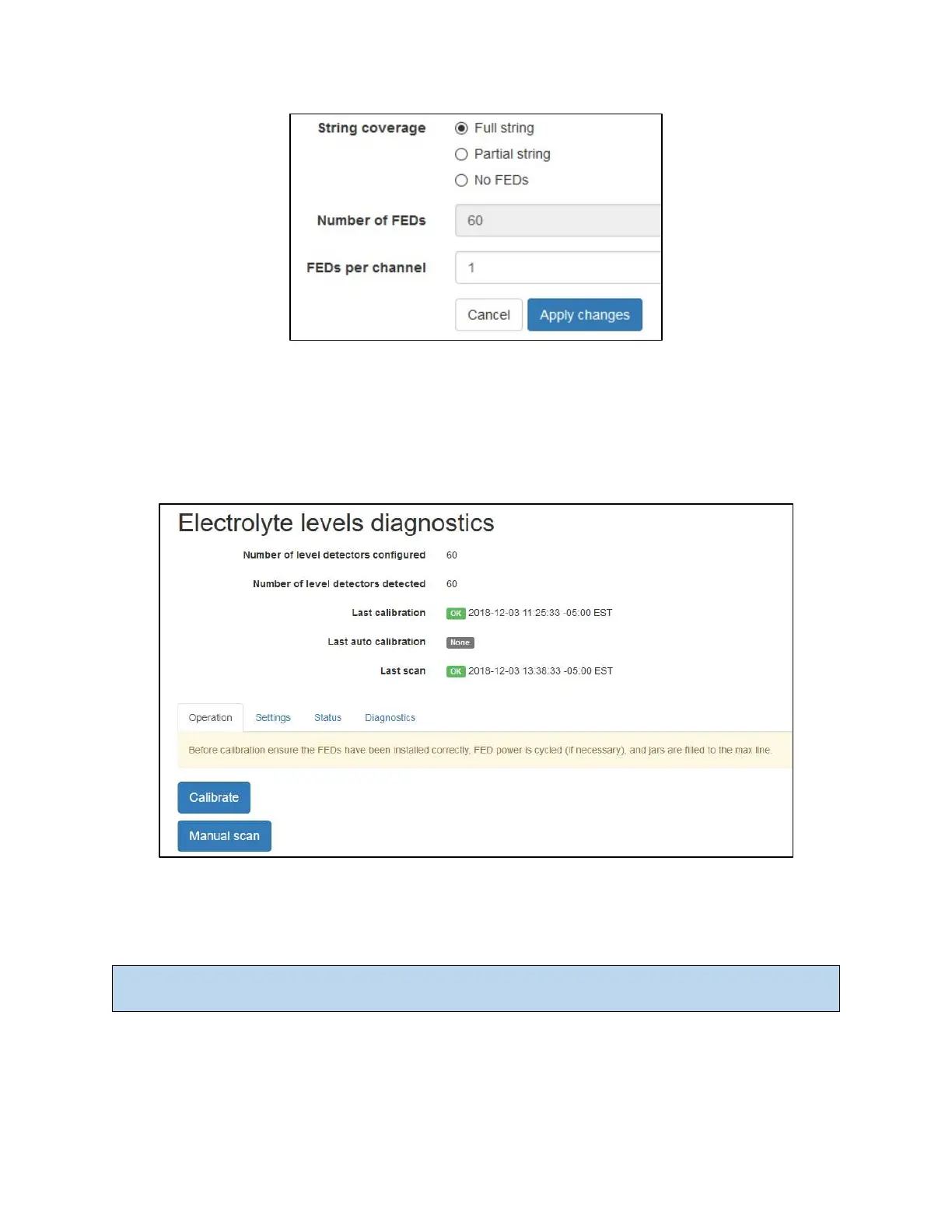 accurately detect low electrolyte levels. Calibration of FED units is done in Settings by selecting the