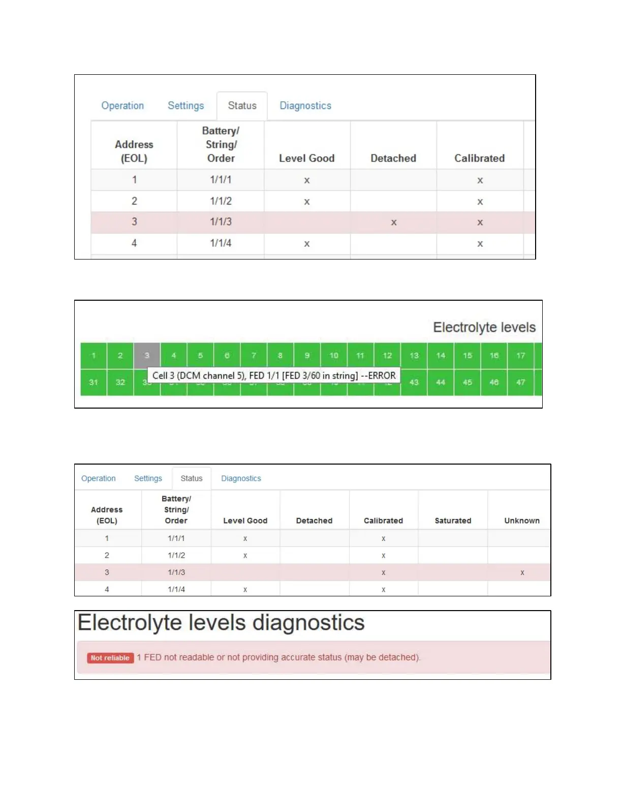 Reliable’ error will display on the Electrolyte Levels Diagnostics page.