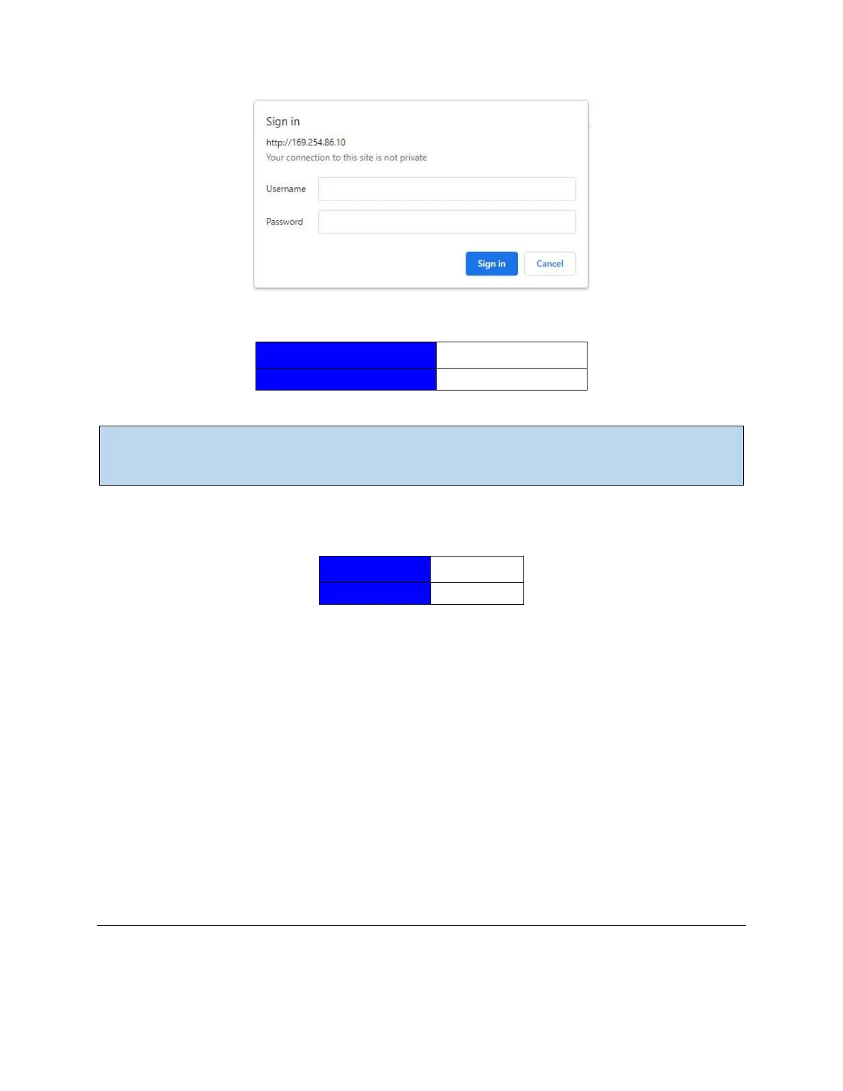 the IP address of the device. When prompted, enter the username and password given in the previous