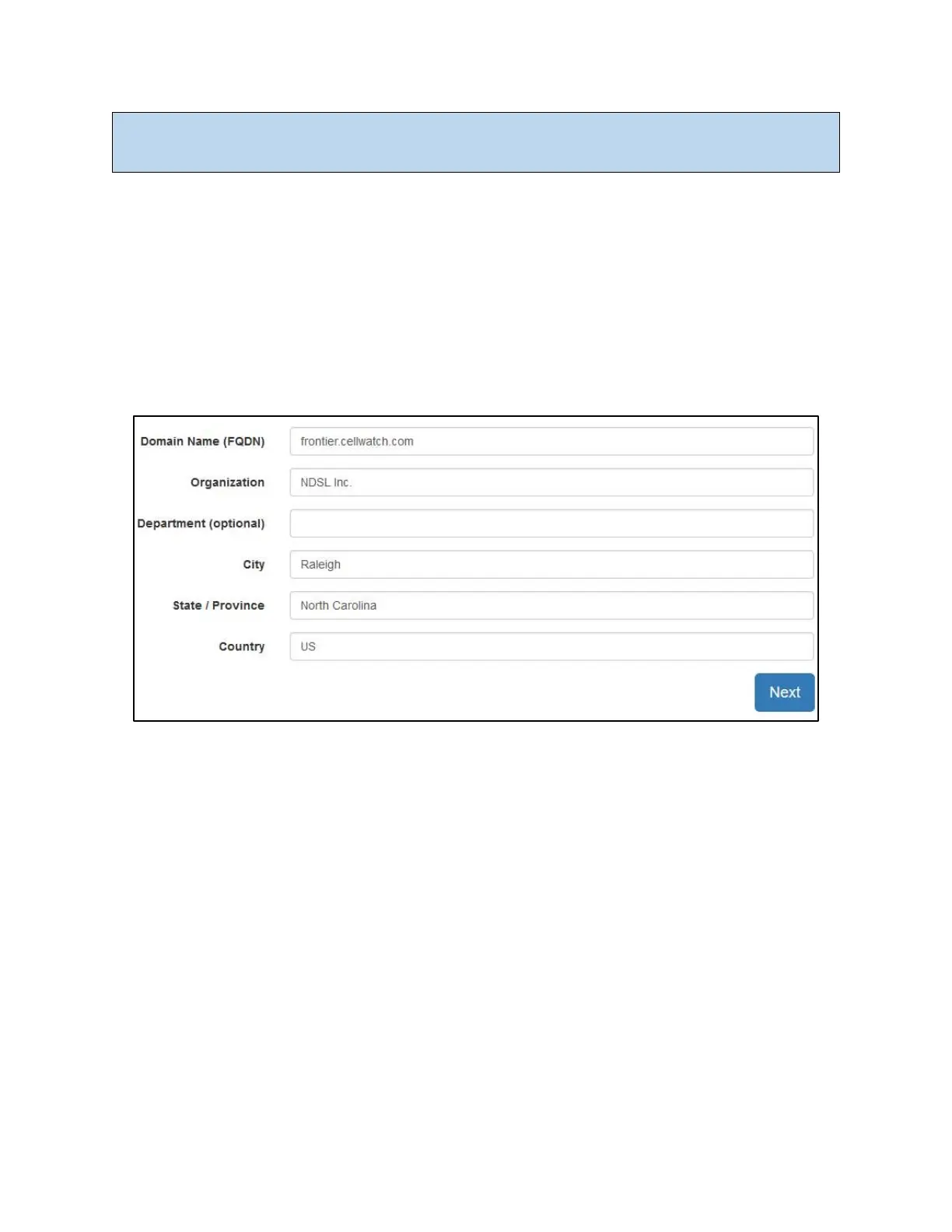 The information above is used by Frontier to generate a Certificate Signing Request (CSR).
