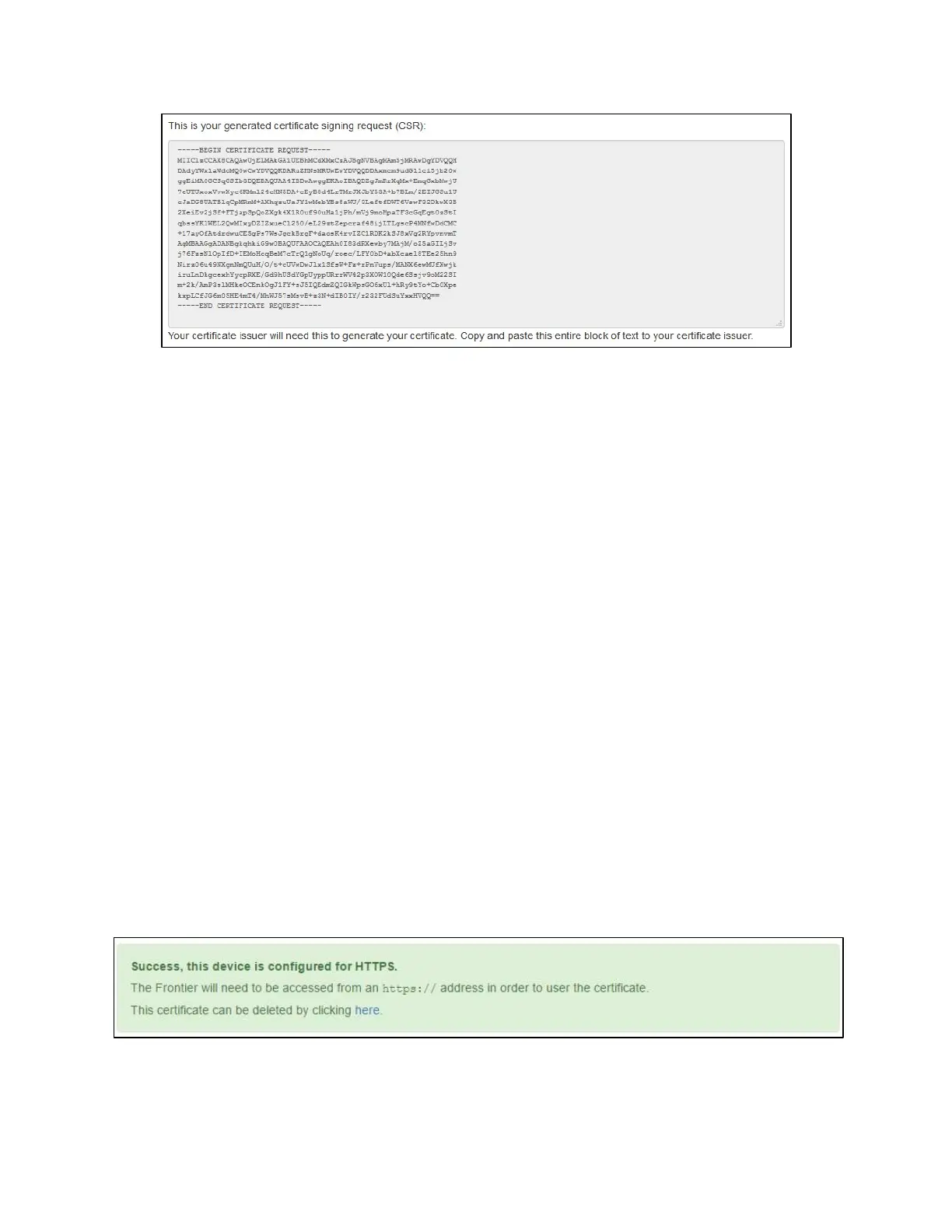 The CSR is stored on the Frontier device and can be retrieved again at any time by navigating to the