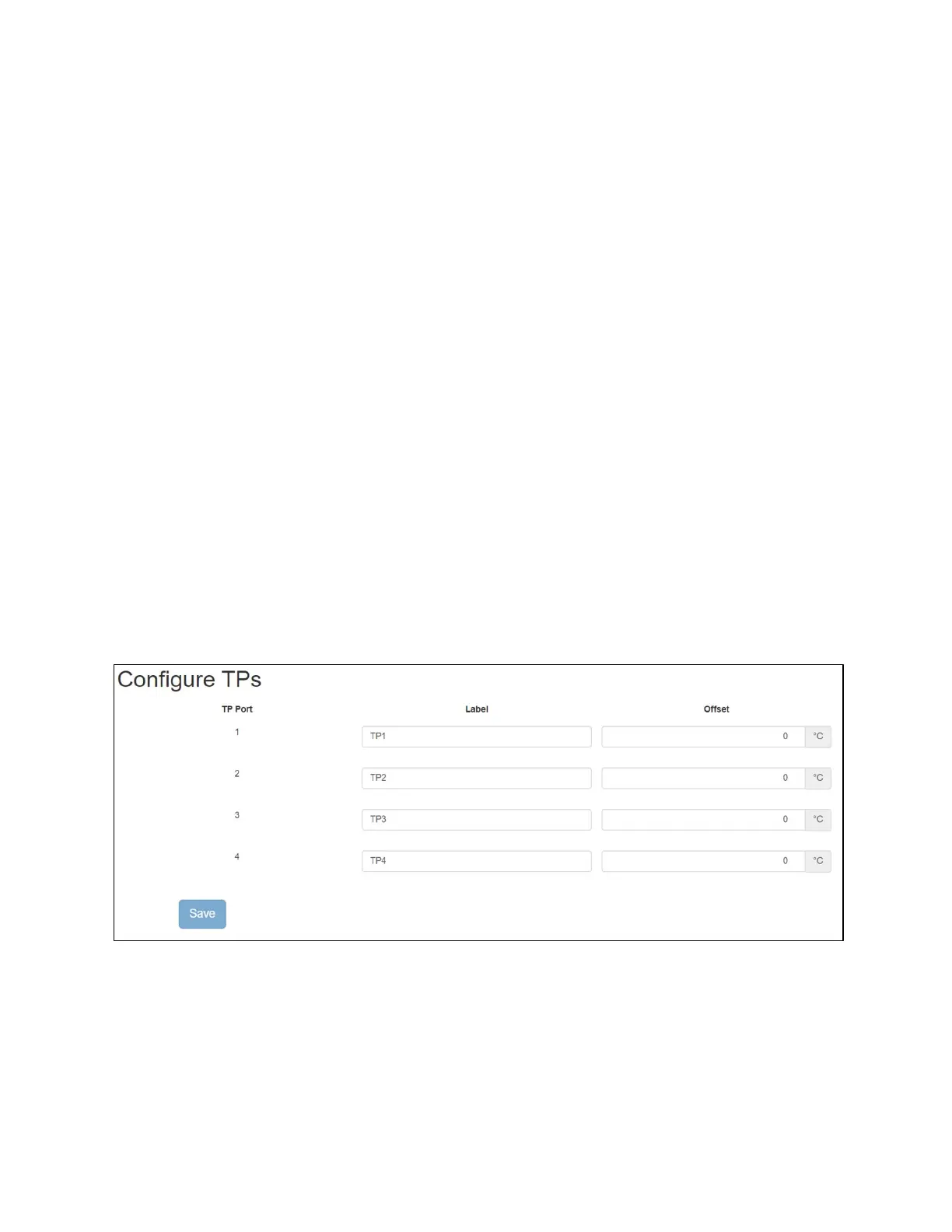 In this menu the labels for the Temperature probes can be set, by default they are TP#. The Offset value