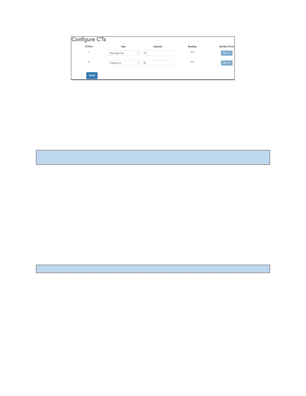 The user can configure a CT to monitor for discharges or charges, depending on the design and capacity