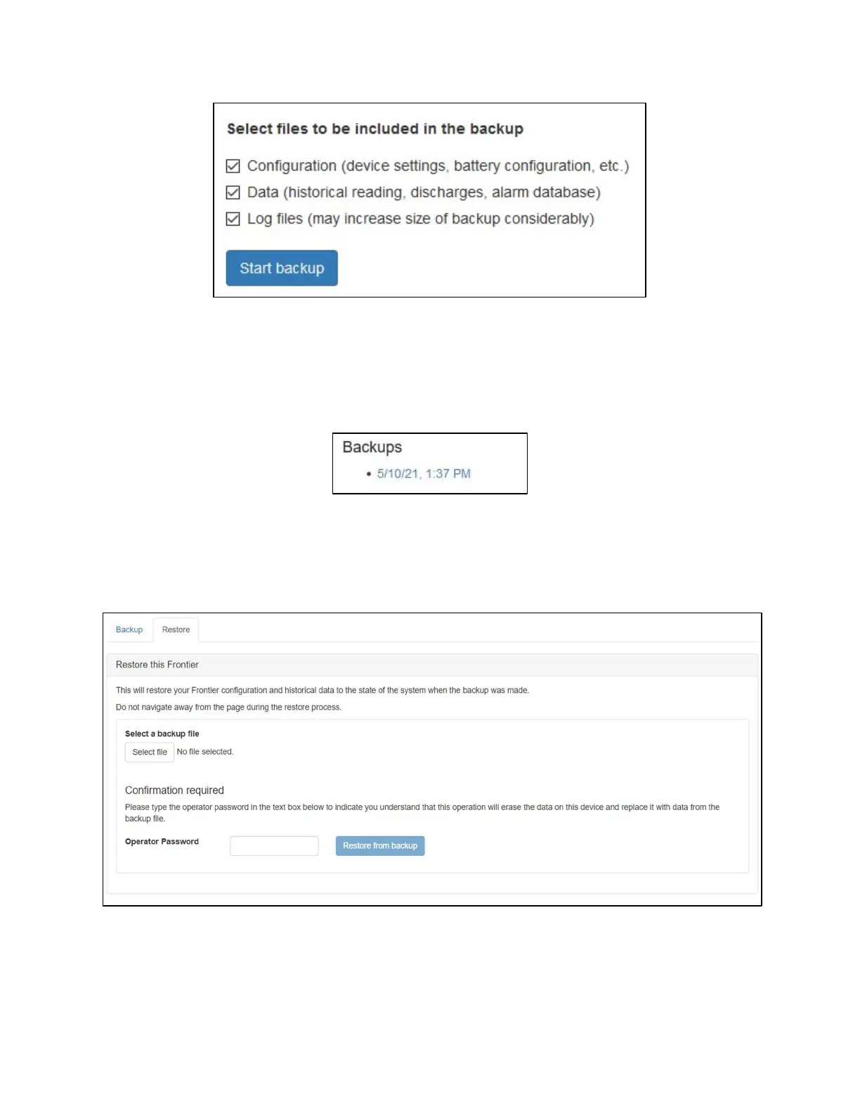 A Frontier device can also be restored from a pre-existing backup. When restoring from backup, any