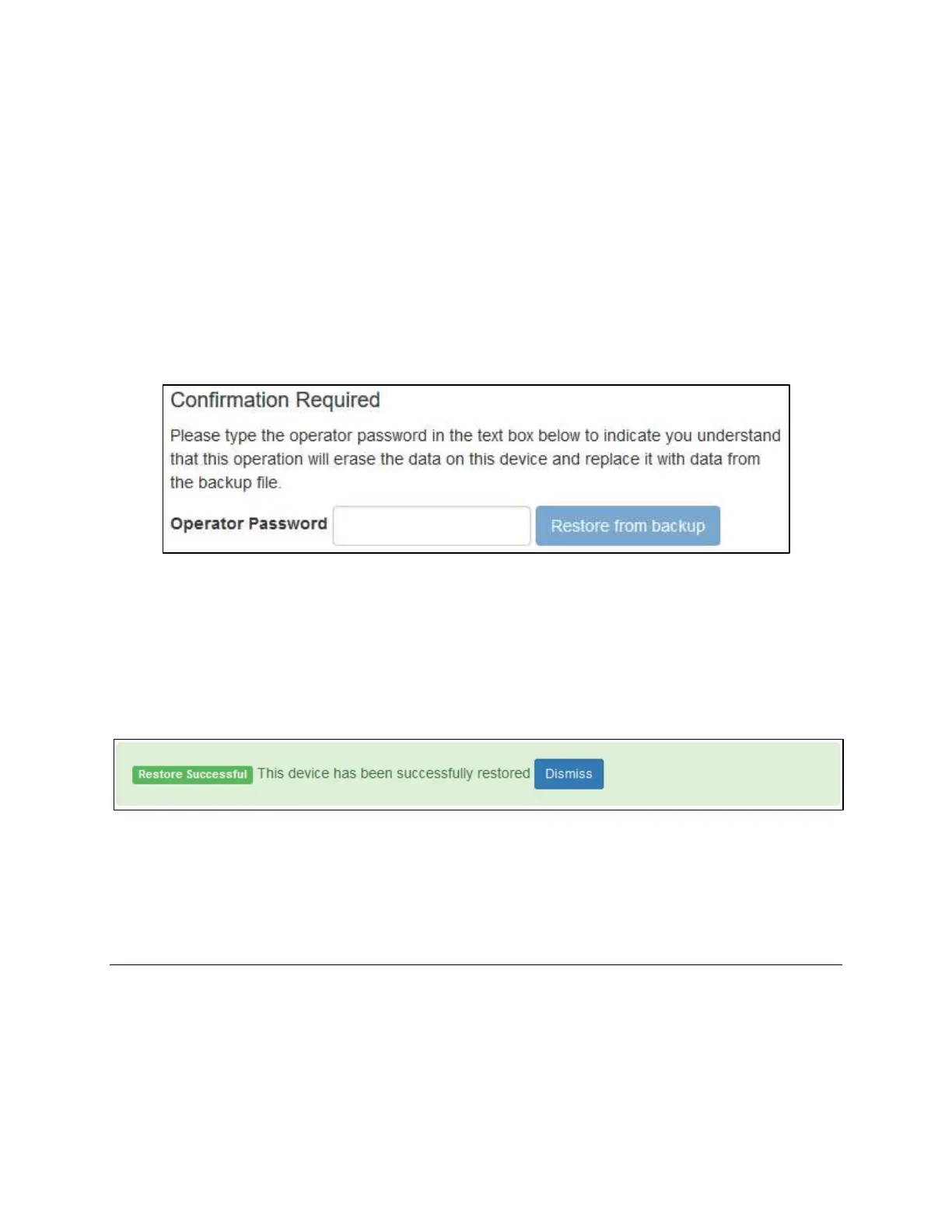 The operator password must be entered into the text area above before the restore process can be started.